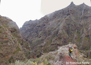 Salimos del pueblo y enseguida caminamos sobre una calzada romana que desciende hasta cruzar el Rio Seco por un precioso puente medieval, allí nos encontramos con dos personajes que iban ataviados con la vestimenta típica del peregrino como son la capa, el sombrero con la concha y el bordón o bastón; no sabemos muy bien porque fue ese encuentro casual, llegamos a la conclusión de que en el Camino hay gente de todo tipo, incluso ellos, que iban muy contentos.